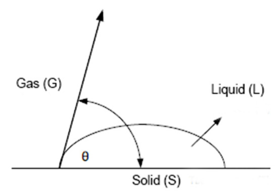 Schematic representation of the contact angle θ formed between the tangent line and the specimen surface.