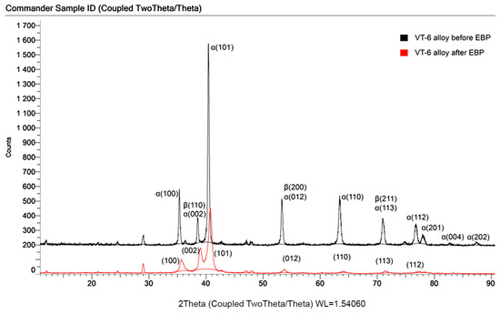 XRD patterns of specimens from VT-6 alloy before and after EBP.