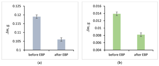 Wear resistance of specimens before and after EBP: (a) VT-1 alloy; (b) VT-6 alloy.