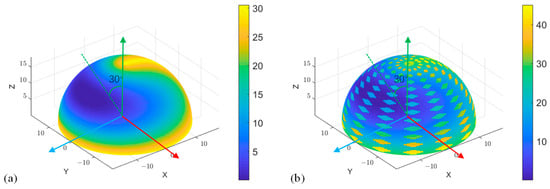 The fluid film load is expressed as the sum of over the and directions on the spherical surface. Additionally, by taking the partial derivative of the femoral head’s convective velocity, the expression for fluid film shear resistance is Equation (10). Finally, the friction factor is used to characterize the lubrication performance of the texture.
