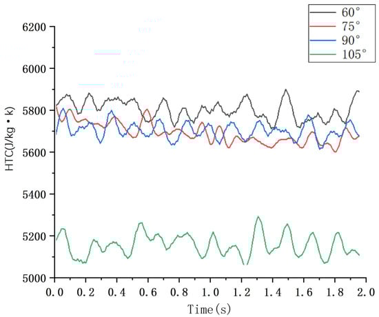 4.4. HTC Analysis of Heat Dissipation of Pinion Tooth Surface Under Different Injection Angles