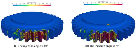 4.3. Numerical Analysis of Pinion Coverage Under Different Injection Angles