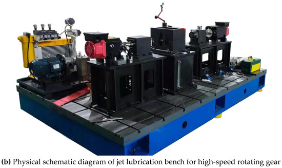 - Through this experimental research, in comparison with previous studies, the optimal spray conditions can be determined. Under a spray pressure of 0.5 MPa for high-speed gear lubrication, the best parameters are an injection distance of 3.5 cm, a spray angle of 90°, an injection diameter of 1.5 mm, and a gear speed of 2000 r/min. At this time, the loss of the high-speed rotating gears is minimized, and the lubrication effect is the best. This not only enhances the efficiency of lubricant use, avoiding waste caused by excessive lubricant application, but also optimizes the spray—lubrication program, providing guidance for the design of gear-transmission systems.