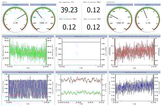- Then, open the test bench through the system software to adjust the speed and torque; the hydraulic station system is opened, and the system works smoothly. The data under this working condition are recorded as the system torque when there is oil injection lubrication, and the average value of each group of data is recorded five times.