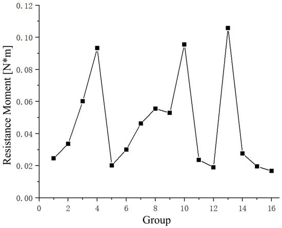 - Subsequently, the hydraulic system is shut down. At this point, the gear is in an idle state. To eliminate the power losses resulting from components such as the gearbox bearings and gear meshing during the test, when the gear was operating within the previous hydraulic system, its surface had been enveloped by an oil film. As a result, the system remains in a stable state. The system torque data under the magnetic condition are recorded as the system torque without oil injection lubrication, and the average value of each set of data is recorded three times.