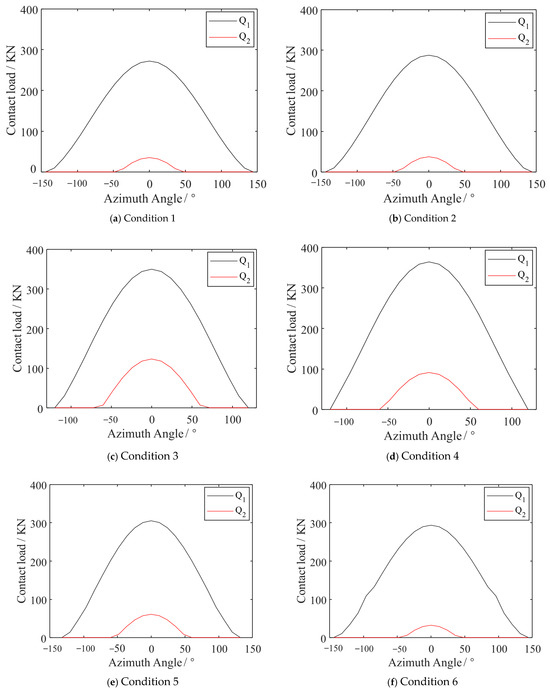 As analyzed in Section 2.1.1, the loads acting on the main shaft bearing are alternating. According to [22], when analyzing the contact characteristics of the main shaft bearing, it is necessary to treat the alternating loads equivalently.