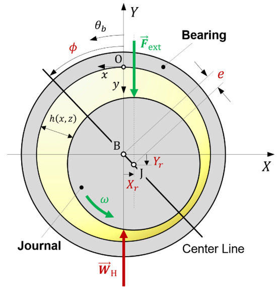 Journal bearings are subjected to different load scenarios. The steady-state loading conditions are considered in this work using the following equilibrium equation (see Figure 2).