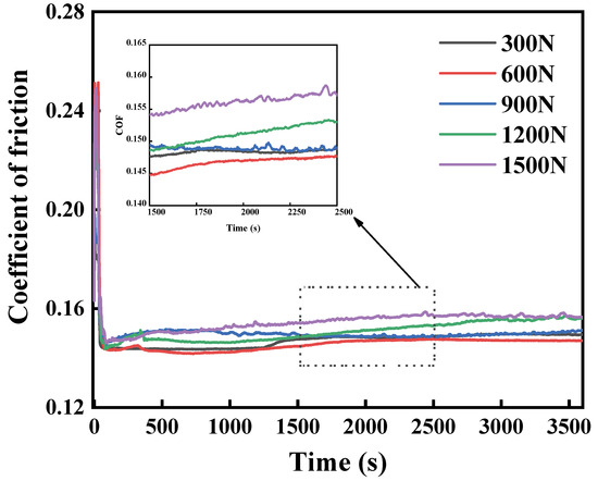 As shown in Figure 5 and Table 5, the friction coefficient decreases with the increasing load at lower loads. This phenomenon is mainly related to the following two reasons: