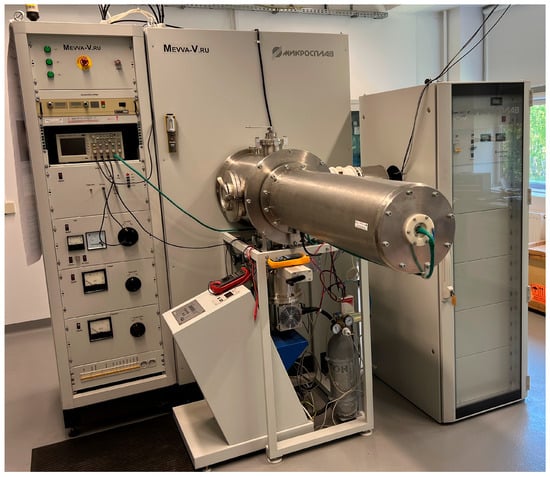 The modification processes were provided at National Centre for Nuclear Studies Świerk in Otwock, Poland, using the MEVVA_V-Ru equipment (Figure 6), manufactured by High Current Electronics Institute/The MICROSPLAV company in Tomsk (Russia), consisting of the Metal Vapor Vacuum Arc (MEVVA) type ion implanter [] with the pulsed ion beam and without mass separation as well as RITM-2M electron beam gun (RITM), joined by a common vacuum chamber.