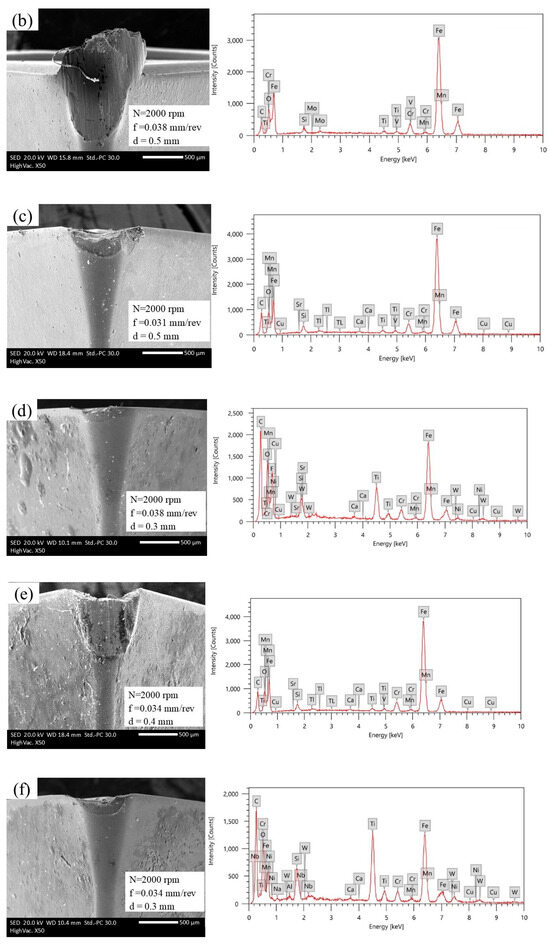 In order to discuss the frictional results, it is essential to consider the chemical structure of cactus oil. Three main acids in cactus oil contribute to the formation of a stable lubricant film between the rubbing contact, namely linoleic acid, oleic acid, and palmitic acid [36]. This result is in accordance with [76], which added cactus oil to mineral lubricant. The study demonstrated that the frictional performance of cactus oil was improved due to the long fatty acid chains in cactus oil after testing in the four-ball wear test, especially the mixture containing 20–80% cactus–mineral mixture. Further explanation of the tribological mechanism of both the base bio-oil and the ACNPs will be discussed in the tool wear part.