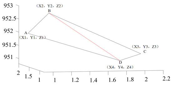 Once the data were fully prepared, the surface area calculation could be performed by sequentially calculating the area of each spatial quadrilateral. The areas of all the computational unit quadrilaterals were then summed to obtain the total surface area of the pavement texture. The specific calculation steps are as follows.