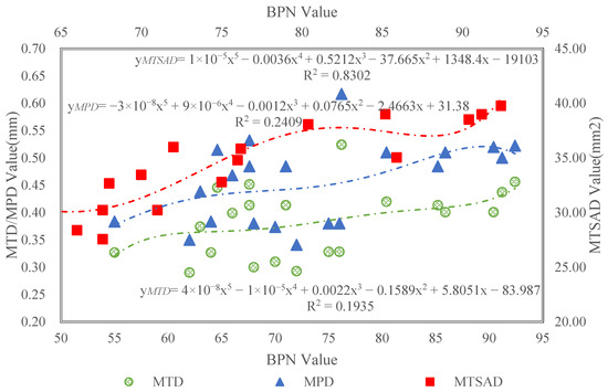Compared with the previous research, this research proposes a 3D evaluation index based on the high-precision 3D structure images of pavement texture, considering the contact area between tires and pavement. Unlike traditional texture indices, such as MTD (Mean Texture Depth) and MPD (Mean Profile Depth), the MTSAD index contains 3D texture structure information, enabling a more accurate evaluation of pavement skid resistance. In contrast to 3D texture evaluation indices calculated by methods such as fractal dimension, Fourier transform, and wavelet transform, the 3D index proposed in this study is more intuitive and easier to popularize. This research conducts a correlation analysis between MTSAD and BPN values, and the results show a high correlation. Therefore, this research demonstrates certain value for the research on pavement texture–friction relationships.
