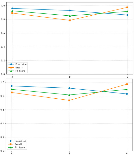 During training, F1-score and accuracy were used as evaluation metrics. The F1-score is a comprehensive metric introduced to balance the effects of accuracy and recall. It is particularly suitable for imbalanced classes and accounts for both precision and recall, preventing the model from overly favoring one of these measures. The F1-score is an effective metric for evaluating the overall performance of a classification model. The formula for calculating the F1-score is as follows: