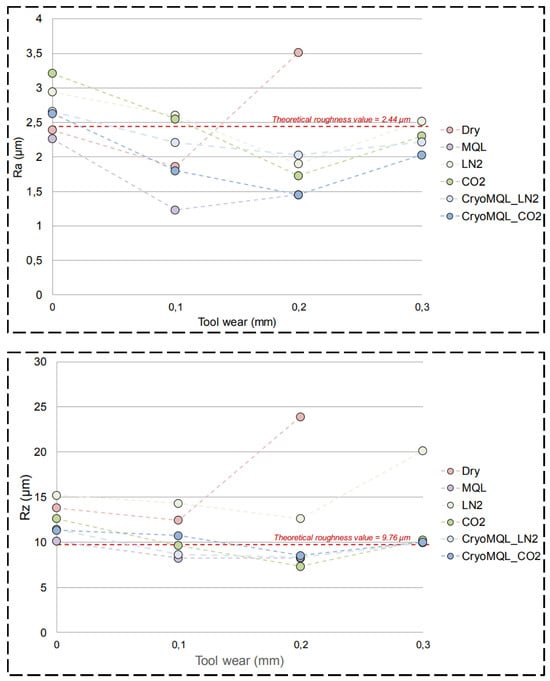 Surface roughness in terms of tool wear at different cooling conditions [].