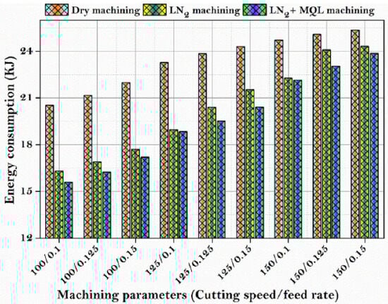 Sustainability has become a crucial priority in the 21st century. Aramcharoen et al. [] and Pušavece et al. [] investigated sustainable machining approaches for Inconel 718 by applying various cooling techniques. Their analysis focused on multiple factors such as cutting forces, power consumption, surface roughness, tool wear, and residual stress. A reduction in these factors was used to demonstrate the sustainability benefits of cryogenic machining.