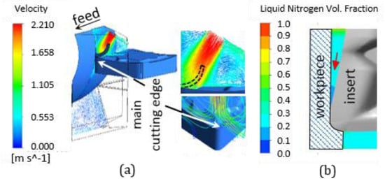 - Salame, C.; Bejjani, R.; Marimuthu, P. A better understanding of cryogenic machining using CFD and FEM simulation. Procedia CIRP 2019, 81, 1071–1076. [Google Scholar] [CrossRef]