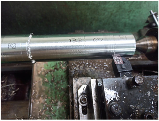 Due to its resistance to corrosion, toughness, and adaptability to different machining environments, AISI 304 steel, also known as austenitic steel, is used in a wide range of machining and engineering applications [21]. It is also good in ductility and is highly durable. The material’s low heat conductivity and hardness make dry machining difficult [22]. This is rectified by the use of conventional cutting fluid. Since there is a large amount of heat generation in the turning process, the heat produced at the site of interaction between the cutting tool and AISI 304 stainless steel is removed by traditional cutting fluids. The workpiece placed on lathe can be seen in Figure 1. Their respective properties are shown in Table 1 and Table 2 [23].