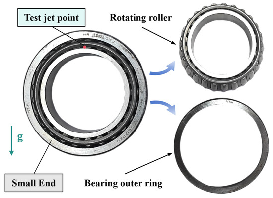 In this paper, research on bearing jet lubrication is carried out using NSK HR 32010XJ tapered roller bearing (Manufactured by Nippon Seiko Co., Ltd., Niigata, Japan) as an example. The geometric structure parameters of this tapered roller bearing are shown in Table 1.