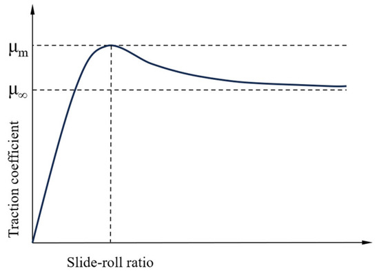 In his research on the friction characteristics of rolling bearings, Gupta categorized test studies into two types based on different contact modes: sliding contact and sliding–rolling contact. Under sliding contact conditions, the primary focus is on the nominal sliding contact friction coefficient. In the case of sliding–rolling contact, the tractive force is generally regarded as a function of the sliding velocity. This approach facilitates the coupling between the tractive force and sliding, which holds significant practical importance for the study of the dynamic behavior of rolling bearings.