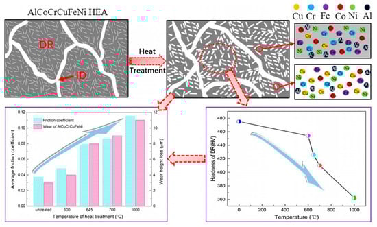 - Luo, X.S.; Li, J.; Jin, Y.L.; Hu, C.P.; Jia, D.; Zhan, S.P.; Yu, Y.; Hua, M.; Duan, H.T. Heat treatment influence on tribological properties of AlCoCrCuFeNi high-entropy alloy in Hydrogen Peroxide-Solution. Met. Mater. Int. 2020, 26, 1286. [Google Scholar] [CrossRef]