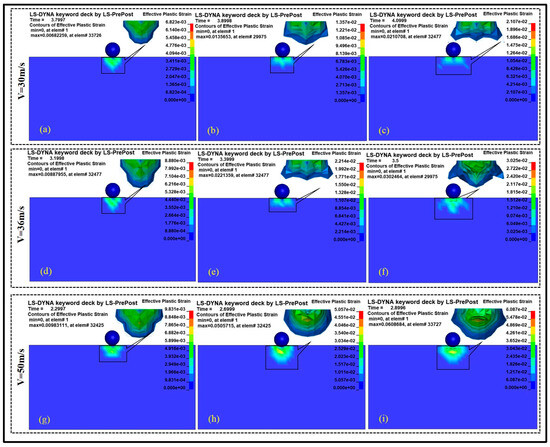 - Effective plastic strain cloud diagram and strain variation law of rock under different impact velocities