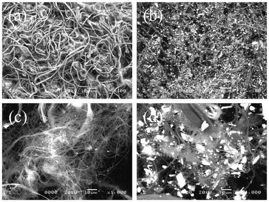 SEM images of untreated AP in (a,c) and ZnO-treated AP in (b,d); the scale bar represents 100 μm in (a,b); the scale bar represents 10 μm in (c,d).