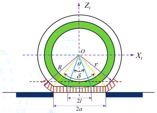 Moreover, whether it is ISRFT or SSRFT, the flexibility of the tire belt and carcass plays a significant role in tire–road contact characteristics. Specifically, the tire belt layer lies between the inner belt layer and the carcass ply, shouldering 60% to 75% of the tire’s stress [22]. To further explore the mechanisms behind these effects, researchers have proposed relevant research with different models. Among them, as a well-known flexible tire model, the flexible ring tire (FTire) model, can accurately simulate how the belt layer affects the tire dynamic forces and is widely used in ride comfort, handling and road load prediction. Its mechanical model is subdivided into sub-models for the belt–layer–carcass–bead structure and sub-models for tread mechanical and tribological characteristics [23]. George et al. [24] developed a tire model to analyze the transient handling performance of a tire. The model couples the flexible carcass–belt structure with the tread. Distinctive from other existing models, it achieves a purely dynamic representation of tire–road contact interactions. It can consider the viscoelastic and inertial properties of separate discretized tread, coupled with a generic stick–slip friction law. Yamashita et al. [25] devised a physics-based flexible tire model. This model can be used to analyze the transient braking and cornering characteristics of tires. It integrates the distributed parameter LuGre tire friction model with the flexible tire model. It can predict transient shear contact stress through spatial discretization. The model can consider the dynamic coupling between tire structural deformation and transient tire friction behavior, thus addressing the issue that traditional steady-state models fail to capture history-dependent dynamic friction effects.