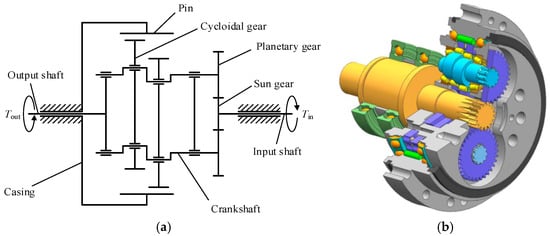 (a) Transmission principle and (b) 3D model of an RV reducer.