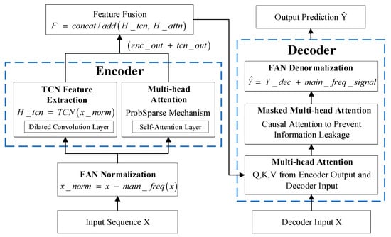 The final multi-step prediction is then obtained through linear layer mapping. Figure 1 shows a schematic diagram of the FAN–TCN–Informer model.