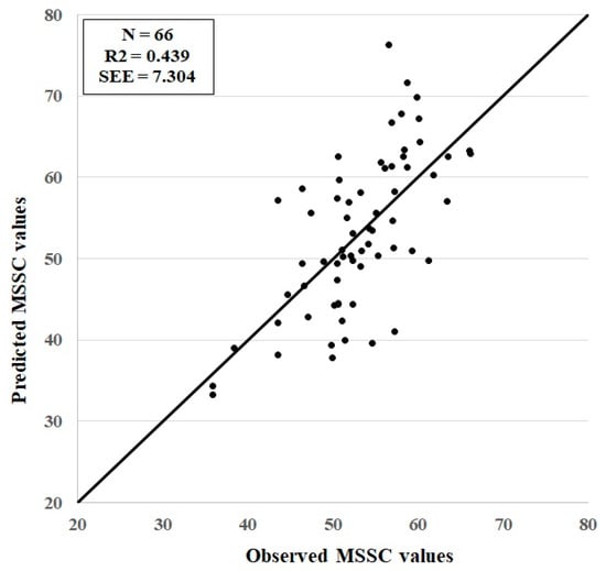Figure 4 shows the predicted vs. observed values for Equation (10).