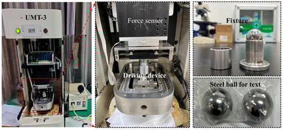 The tribological performance was evaluated using the UMT-3 friction and wear tester, as seen in Figure 10. The test environment consisted of a room temperature of 23 °C, an air relative humidity of 35%, and the test time was 1200 s. The used upper sample consisted of a stainless steel circle having a diameter of 20 mm. The sample was high acrylonitrile stator rubber having a Shore hardness of 70 HA. The rubber sample was fixed on the workbench by screws and positioning pins. The test load was set to 10 N, the shale oil actual well fluid was used as lubricating oil, the friction and wear tester had a reciprocating stroke of 12 mm, and the frequency was equal to 2 Hz. After the test was completed, the friction coefficient and wear depth curves were drawn based on the gathered discrete data, and the wear samples were subjected to ultrasonic cleaning with alcohol and acetone to remove the wear debris on the surface.