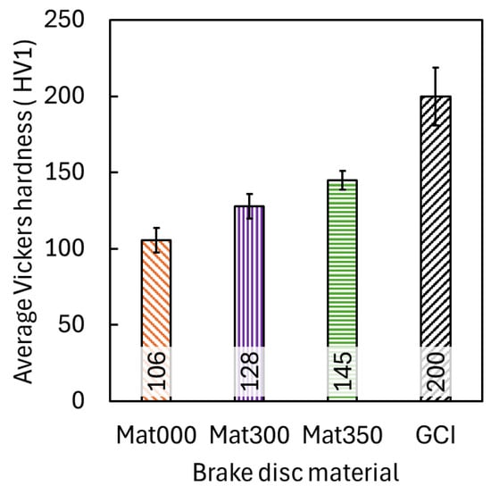 3.2. Microhardness Evaluation of Brake Materials