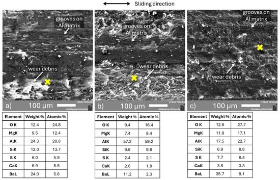 - Rosenberger, M.R.; Schvezov, C.E.; Forlerer, E. Wear of Different Aluminum Matrix Composites under Conditions That Generate a Mechanically Mixed Layer. Wear 2005, 259, 590–601. [Google Scholar] [CrossRef]