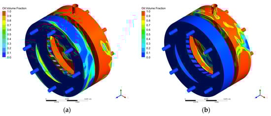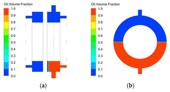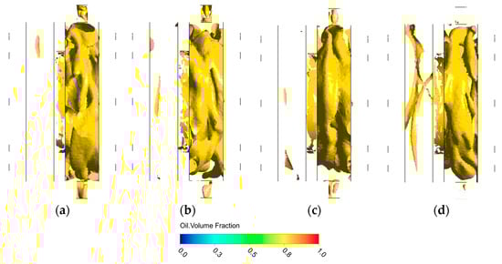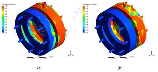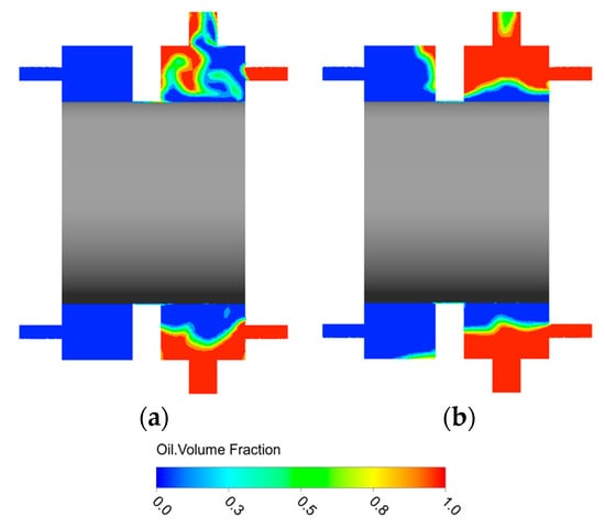 3.3. Analysis of the Transient Characteristics of the Oil–Gas Two-Phase Flow Field in the Bearing Cavity