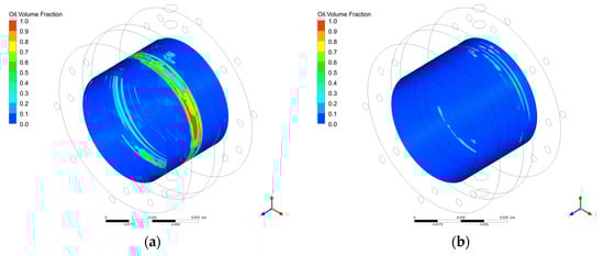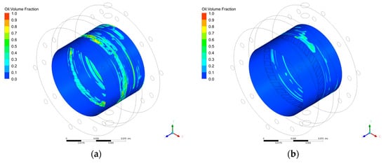 3.4.2. Analysis of the Lubricating Oil Leakage Characteristics of the Graphite with Oil-Return Groove Bearing Cavity Sealing System