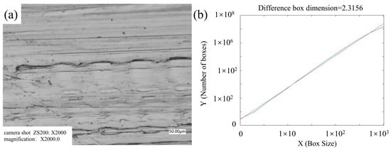 46]. While fractal dimension has been successfully applied to characterize wear in various engineering fields, including metal cutting tools, bearings, and general material science, its detailed application to analyzing the subtle yet significant morphological changes induced by soft agricultural abrasive wear remains underexplored. Leveraging fractal analysis in this context could offer a more sensitive and objective quantitative tool for assessing wear severity and machine health in agricultural applications. Current applications of fractal analysis to wear, as seen in Wang et al. [