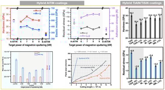- Kim, K.H.; Choi, S.-r.; Yoon, S.-y. Superhard Ti–Si–N coatings by a hybrid system of arc ion plating and sputtering techniques. Surf. Coat. Technol. 2002, 161, 243–248. [Google Scholar] [CrossRef]