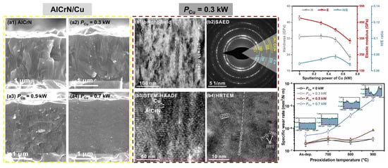 - Geng, D.; Li, H.; Chen, Z.; Xu, Y.X.; Wang, Q. Microstructure, oxidation behavior and tribological properties of AlCrN/Cu coatings deposited by a hybrid PVD technique. J. Mater. Sci. Technol. 2022, 100, 150–160. [Google Scholar] [CrossRef]