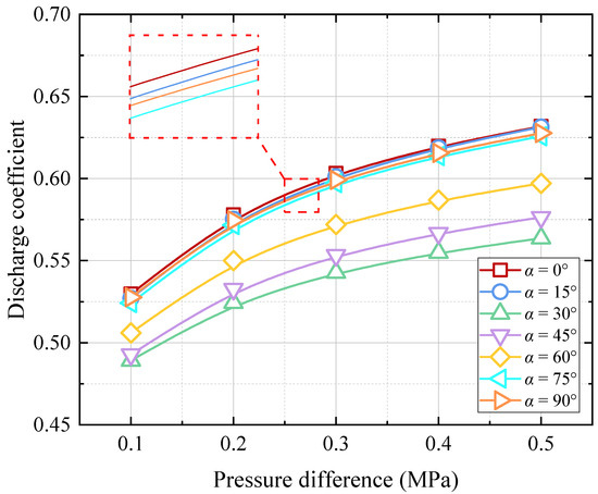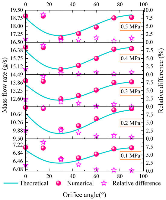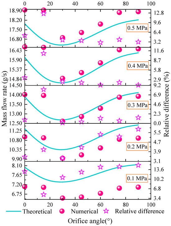 - The theoretical equations considering the orifice angle and pressure coefficient obtained by the curve fit method exhibit a high accuracy. Compared to the original theoretical method not considering the pressure effect, the precision of the theoretical method improved in this paper is enhanced by over an order of magnitude. The average relative derivation between the calculated oil mass flow rate and numerical simulations is about 2%. These results indicate that the improved method can effectively predict the discharge coefficient under varying pressure and orifice angle conditions.