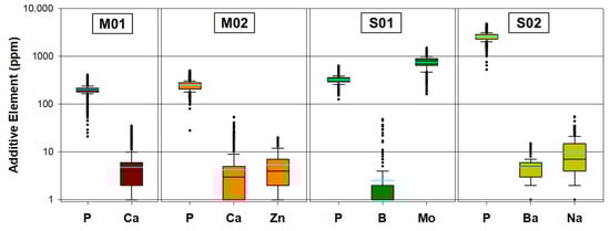 - Lubricant S01 had P and S as its main additives, with a small quantity of Si and traces of B, similar to M01 and M02.