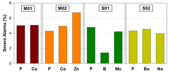 | M02 | 25.70 | P, S, Si | 23.72 | Ca, Na | 17.14 | Zn |