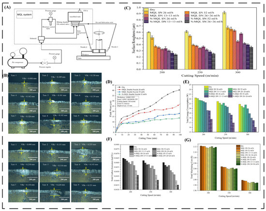 MQL works on the basic principle that “more is not always better.” So, it replaces a huge amount of oils, water, and coolants in the workshop and promotes cleaner production. The MQL system is easy to use; the oil and air mixture is delivered to the workpiece–tool interface. Many researchers have designed their own MQL systems according to their requirements. However, the MQL system is also commercially available; Unist (Grand Rapids, MI, USA), DropsA (Macomb, MI, USA), Bechem (Hagen, Germany), MAFA-Sebald Produktions-GmbH (Breckerfeld, Germany), Apache Aerospace (Mukilteo, WA, USA), HES Lubemec (Gloucester, UK), Lubrication Scientifics(Irvine, CA, USA), and Vogel Lubrication (Senftenberg, Germany) are some well-known manufacturers of the MQL system.