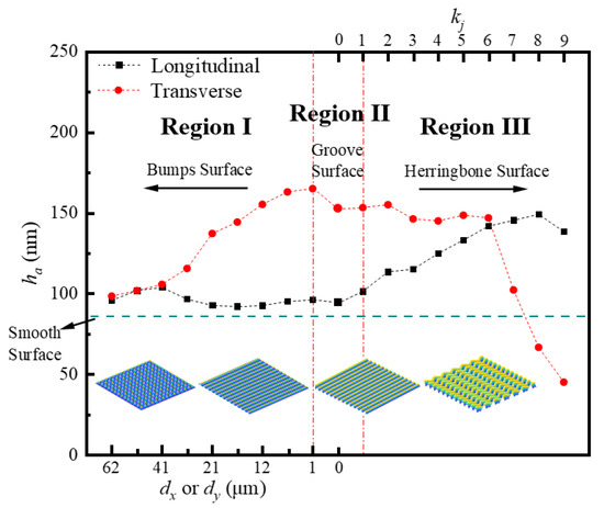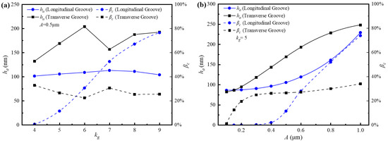 of longitudinal grooves becomes significantly higher than that of transverse grooves. This indicates that under pronounced anisotropic conditions, i.e., when the ridge height is large, the lubrication performance of transverse groove surfaces is superior to that of longitudinal groove surfaces.