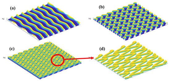 Surfaces with herringbone: The herringbone structure, as shown in Figure 1a, can be numerically generated by the following equation [26]: