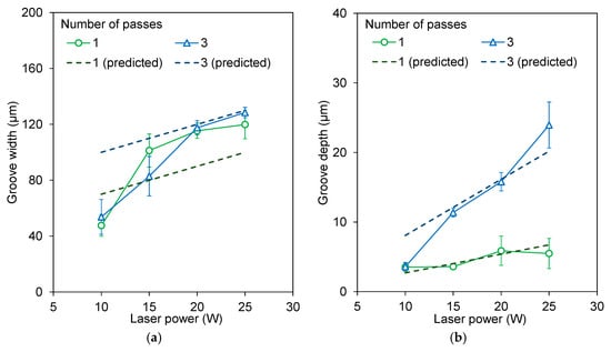3.1. Effect of Laser Power and Number of Passes on Width and Depth of Micro-Grooves