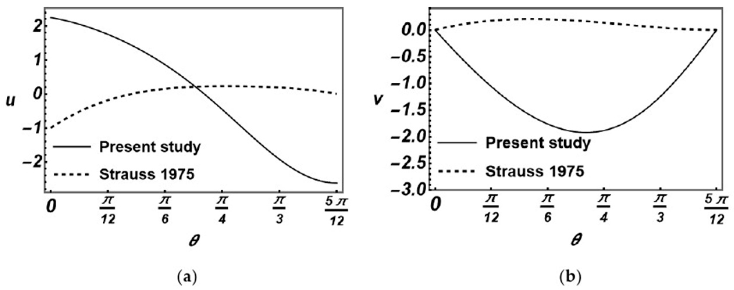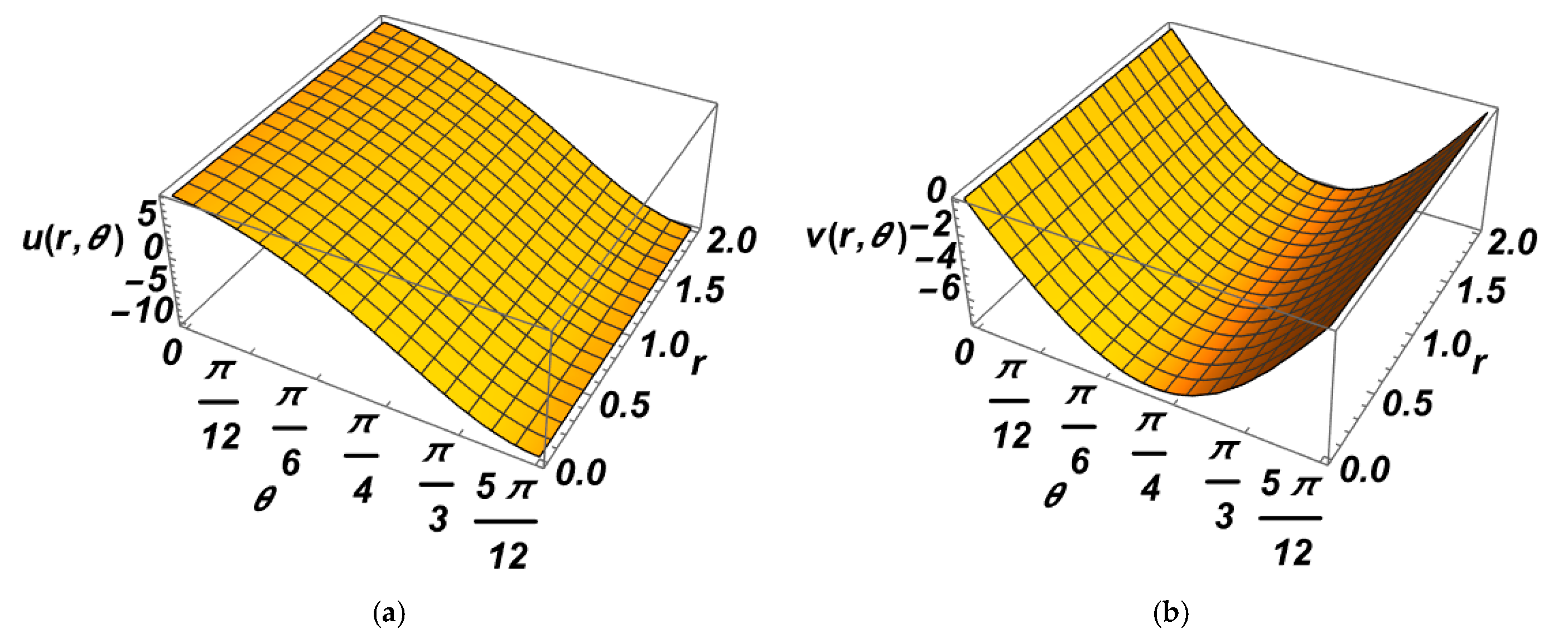 29]. Furthermore, to examine the accuracy of the present results, a residual error analysis is performed by substituting the derived expressions of velocity, pressure, and stress given in Equations (82)–(87) into the governing Equations (8) and (9). This procedure yields the error functions