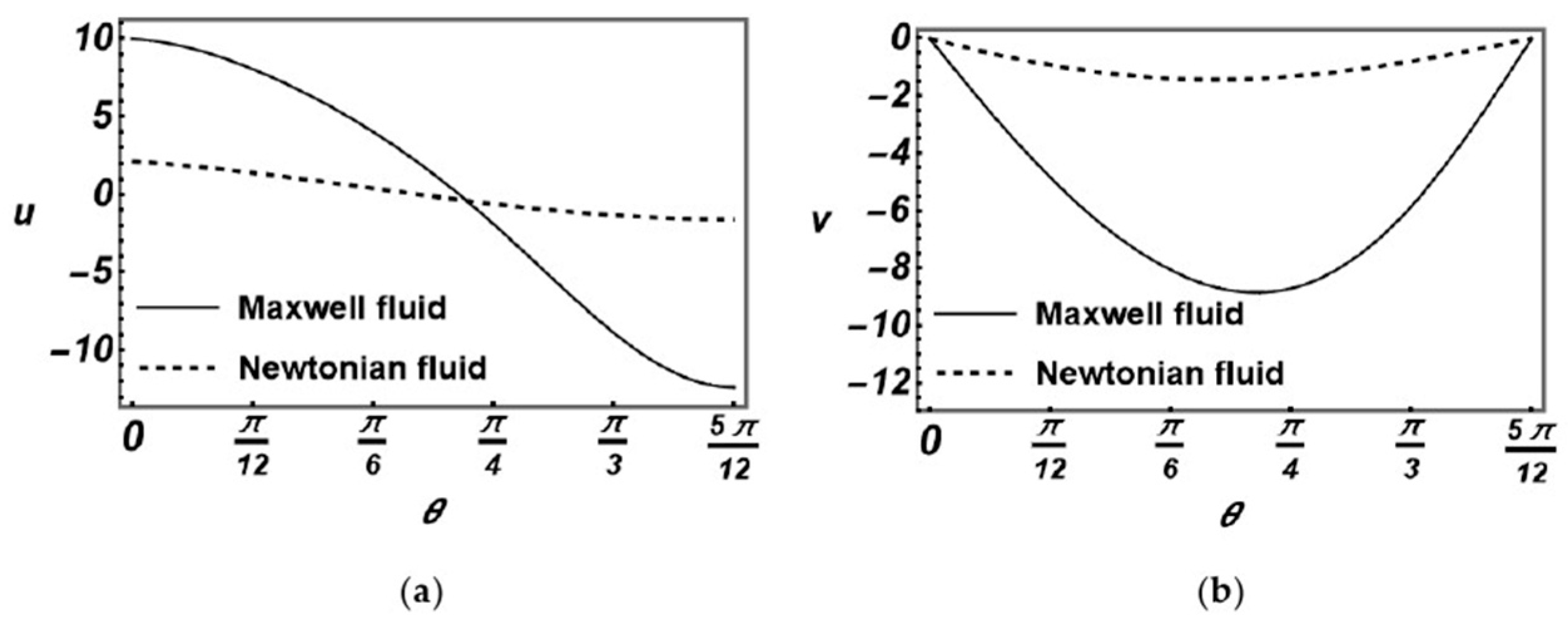 , the obtained solutions in Equations (82)–(87) reduce to the solution of creeping flow of a Newtonian fluid, which is consistent with the findings of Sprittles et al. [