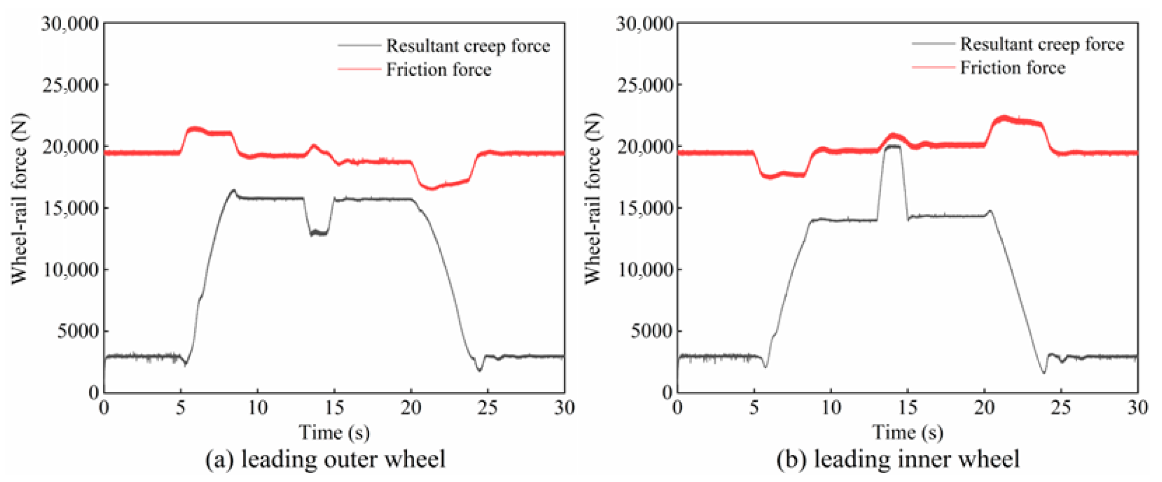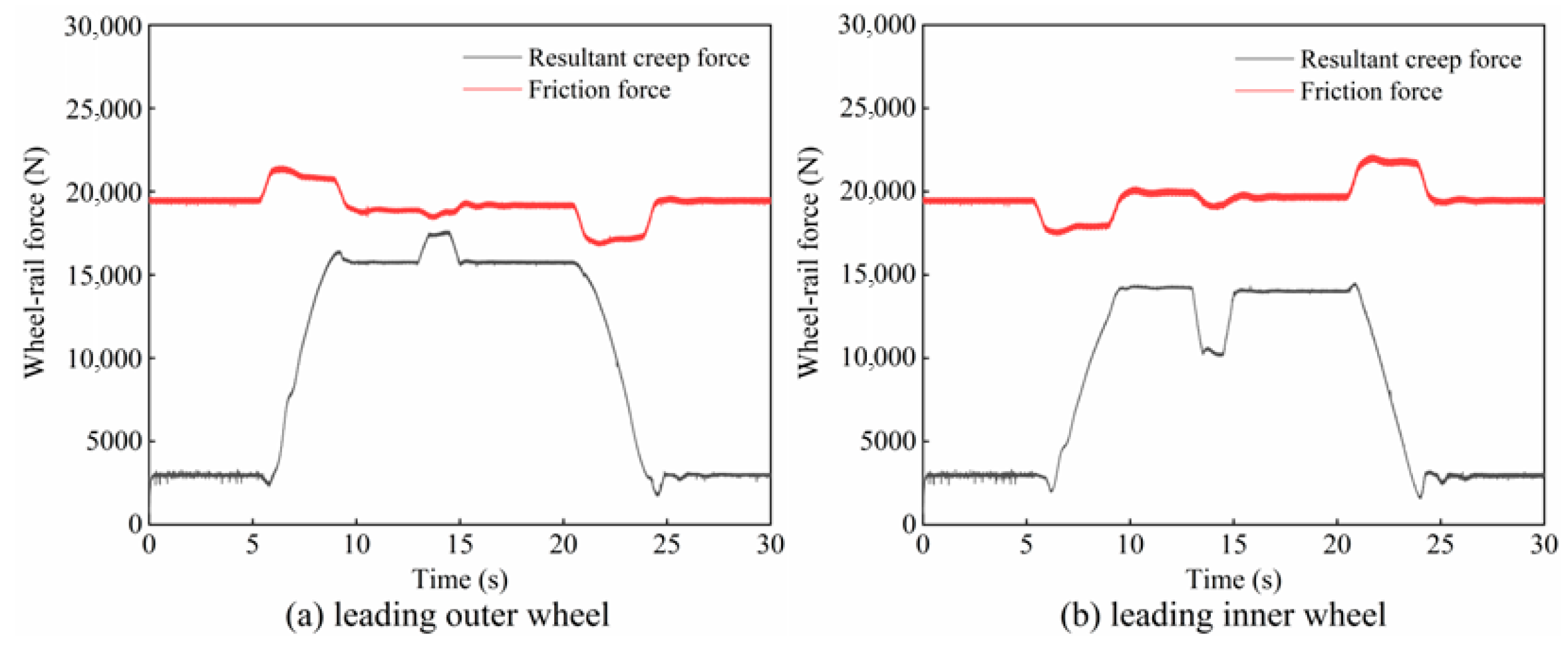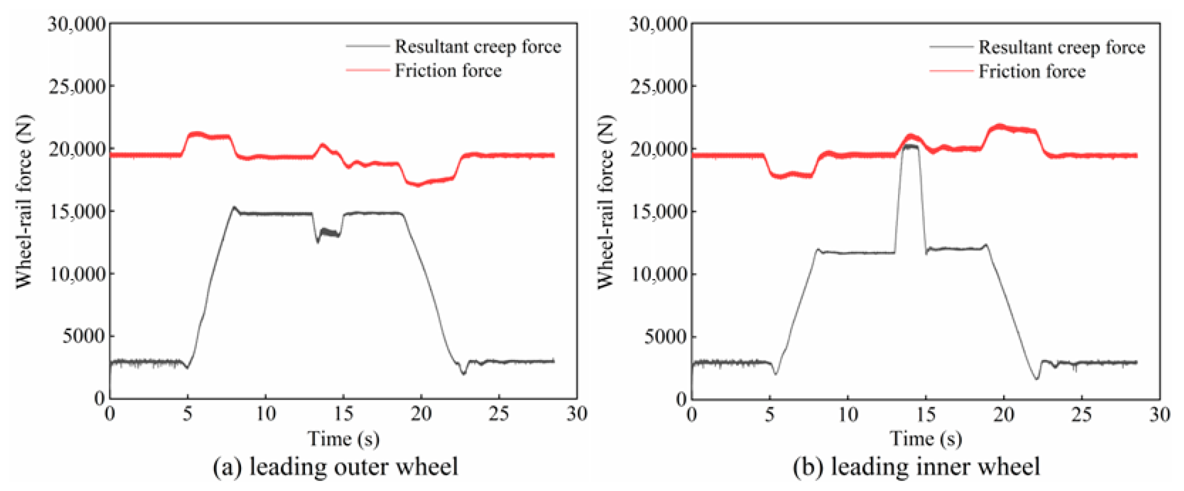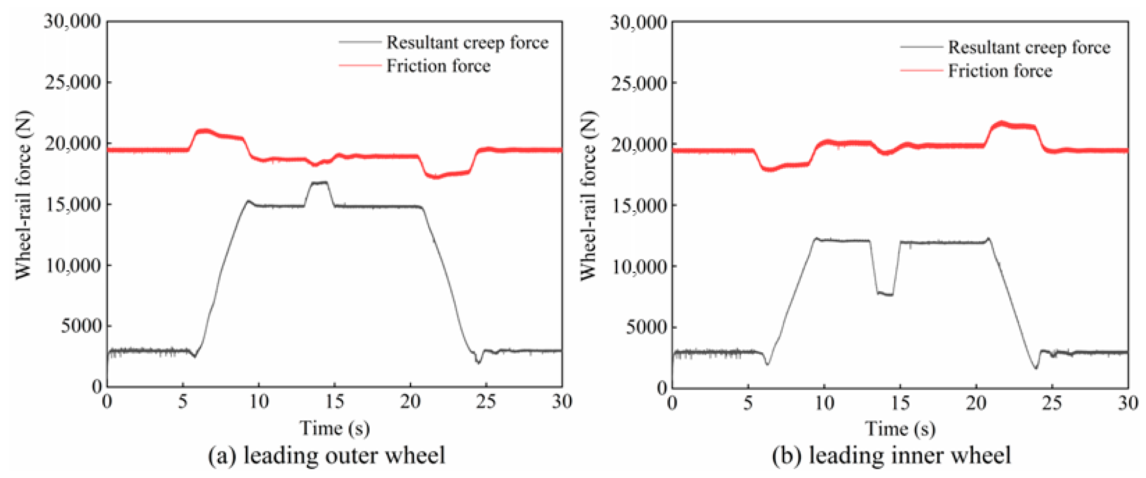 2. Analysis of Wheel–Rail Creep Characteristics on Large-Radius Curves