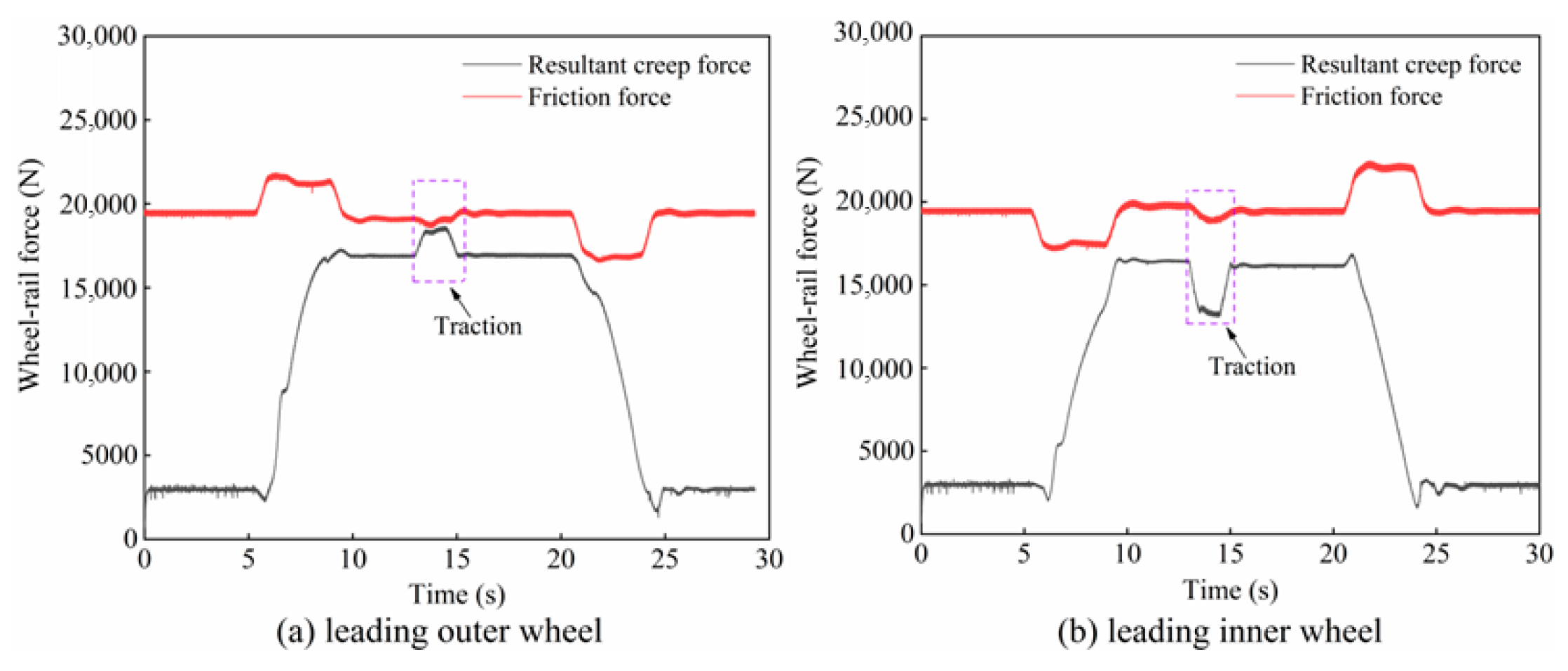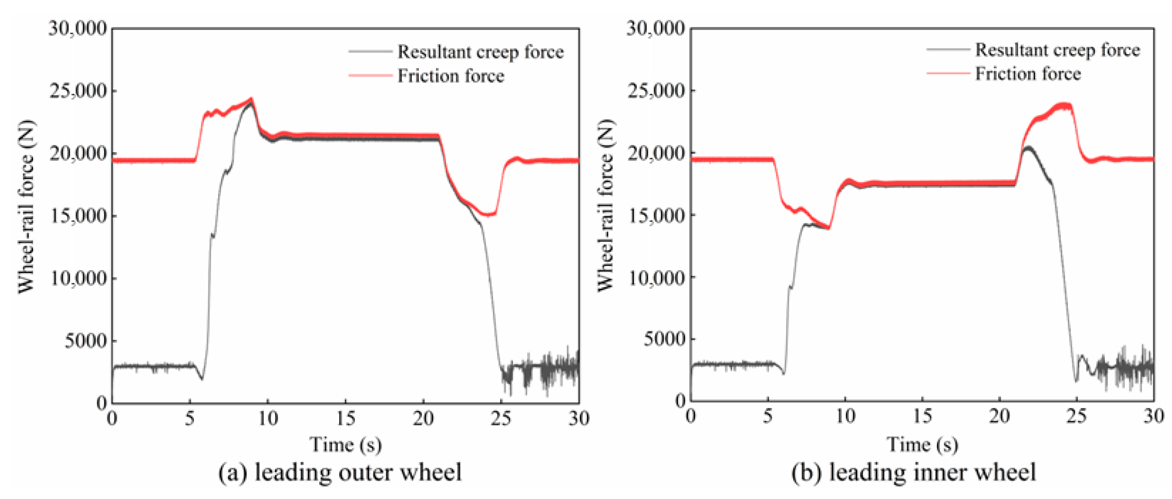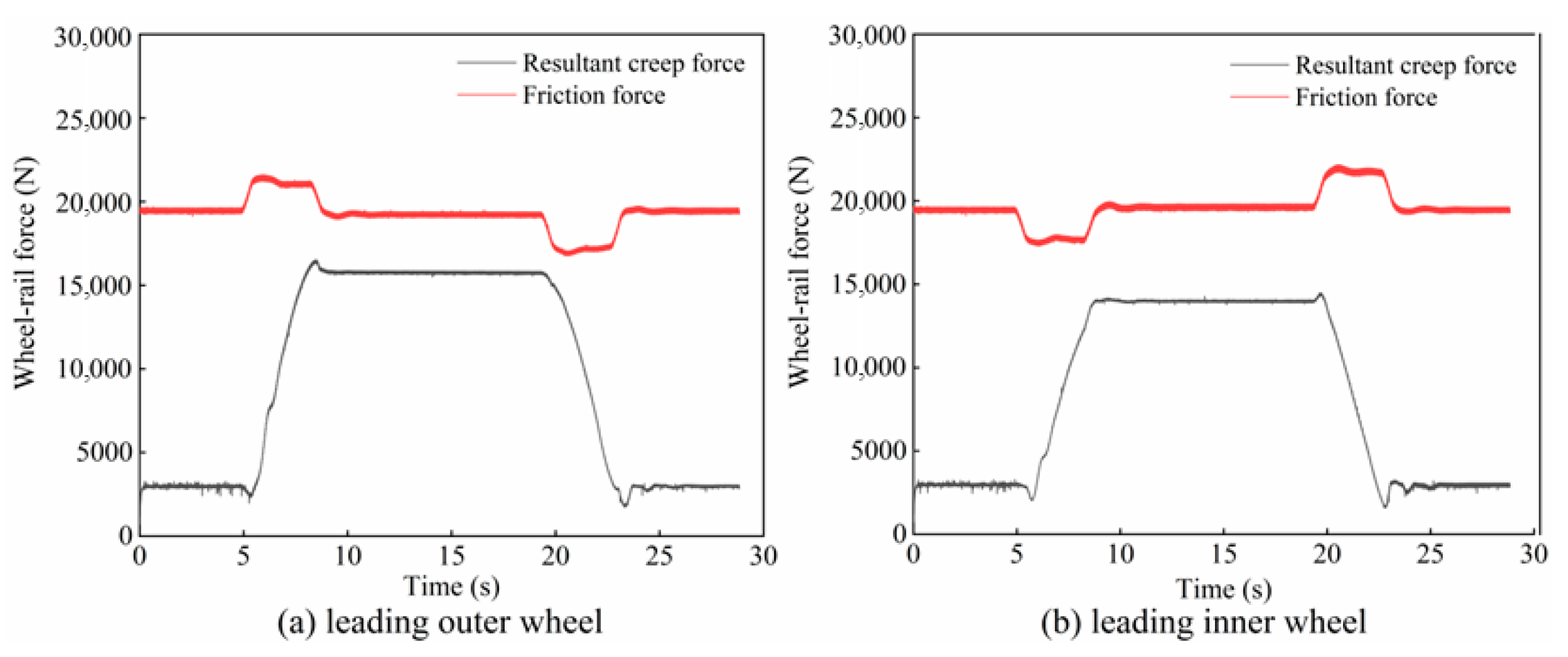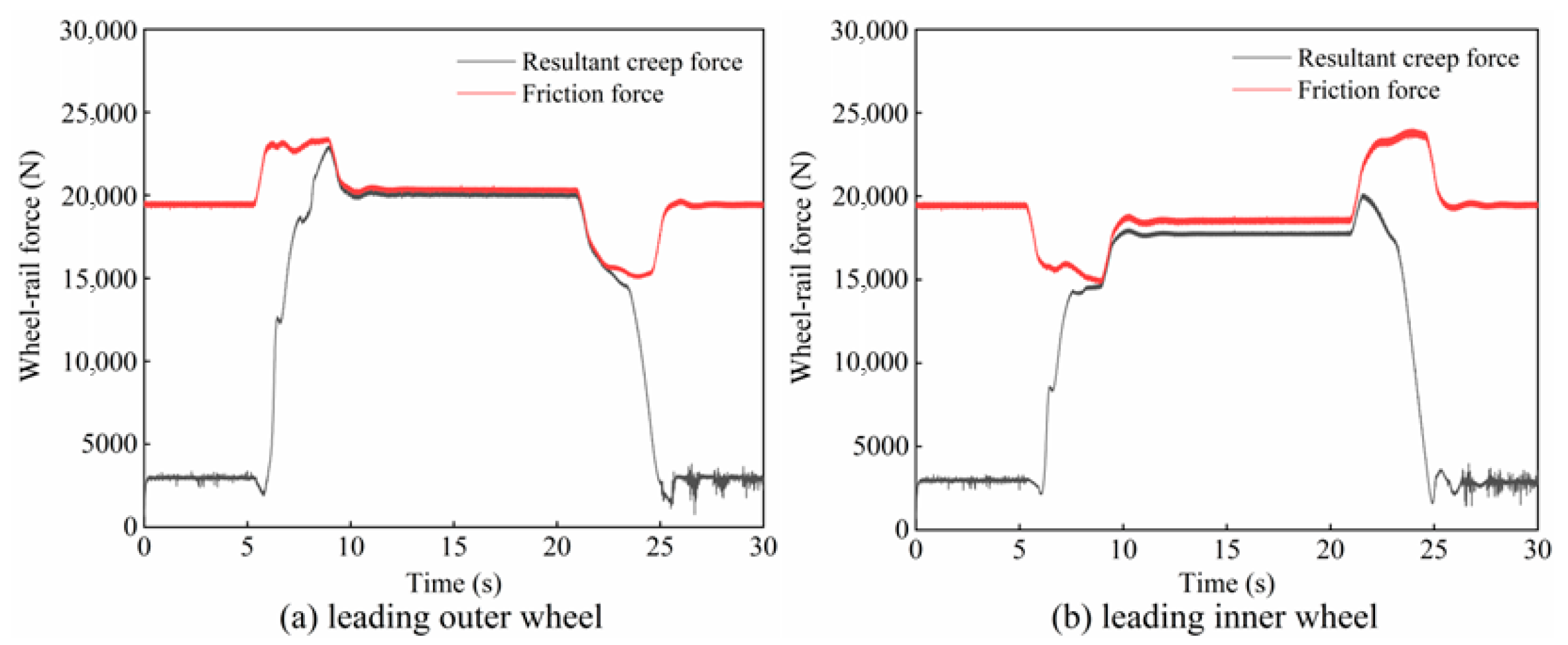 2. Analysis of Wheel–Rail Creep Characteristics on Large-Radius Curves