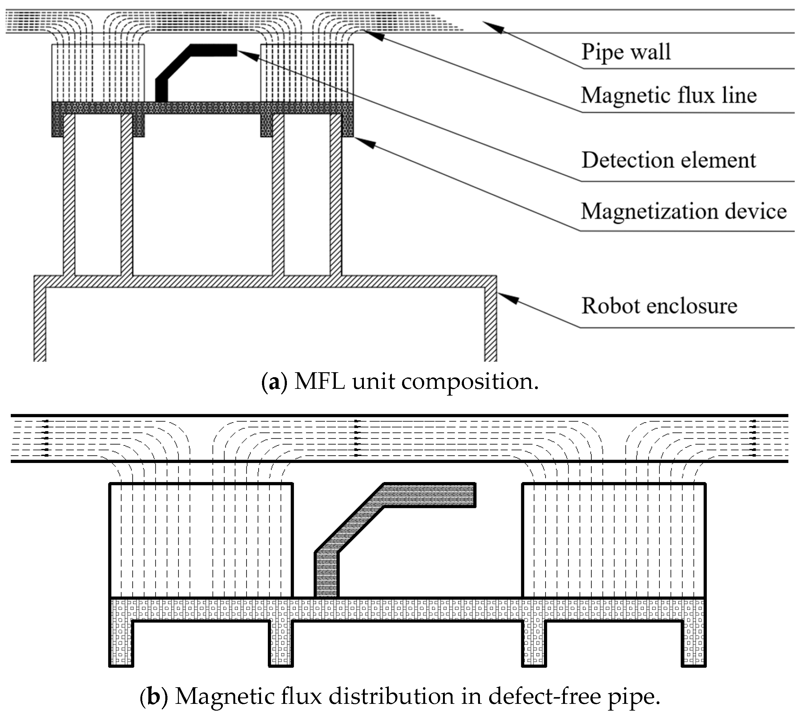 13. Kim, H.M.; Yoo, H.R.; Park, G.S. A New Design of MFL Sensors for Self-Driving NDT Robot to Avoid Getting Stuck in Curved Underground Pipelines. IEEE Trans. Magn. 2018, 54, 1–5. [Google Scholar] [CrossRef]